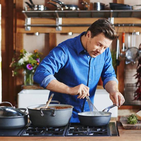 Zoznámte sa s jednoduchými tipmi Jamieho, ktoré posilnia vašu sebadôveru v kuchyni, a s jeho radami pri výbere ideálnych panvíc do rúry, na plynovú alebo indukčnú varnú dosku. Navyše môžete urobiť niečo pre životné prostredie a vyskúšať naše ekologické tipy