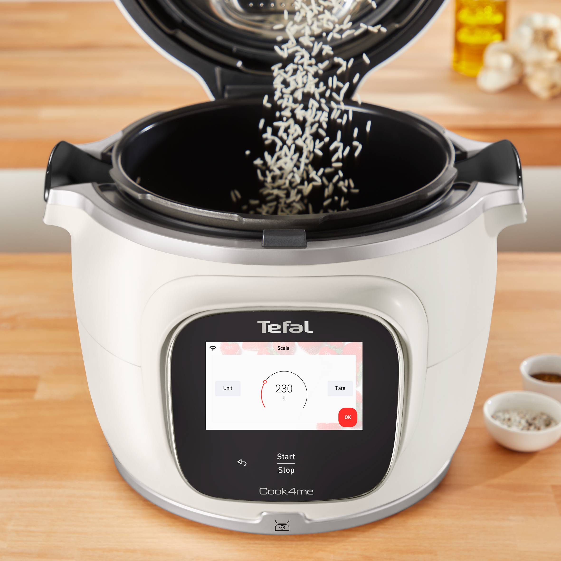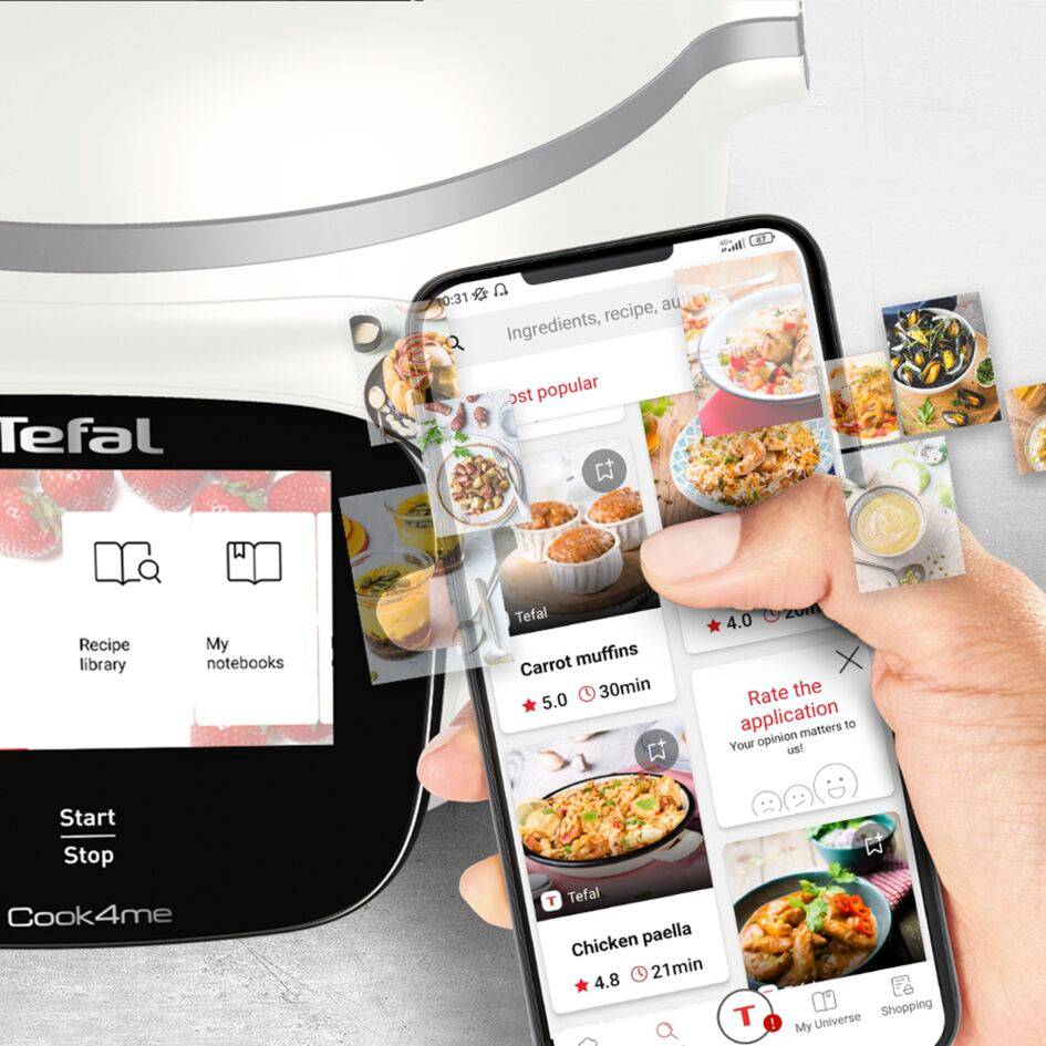 Objavte multifunkčný hrniec Cook4me Touch Pro, vďaka ktorému zvládnete domáce varenie ľavou zadnou! Vďaka presnej integrovanej váhe suroviny ľahko odvážite aj počas samotného varenia. Doprajte si personalizované návrhy receptov vďaka WiFi pripojeniu a aplikácii Tefal. Nechajte sa viesť krok za krokom pomocou tipov, fotografií a videí na veľkej dotykovej obrazovke, ktorá sa ľahko používa, a vaše jedlá budú vždy dokonalé
