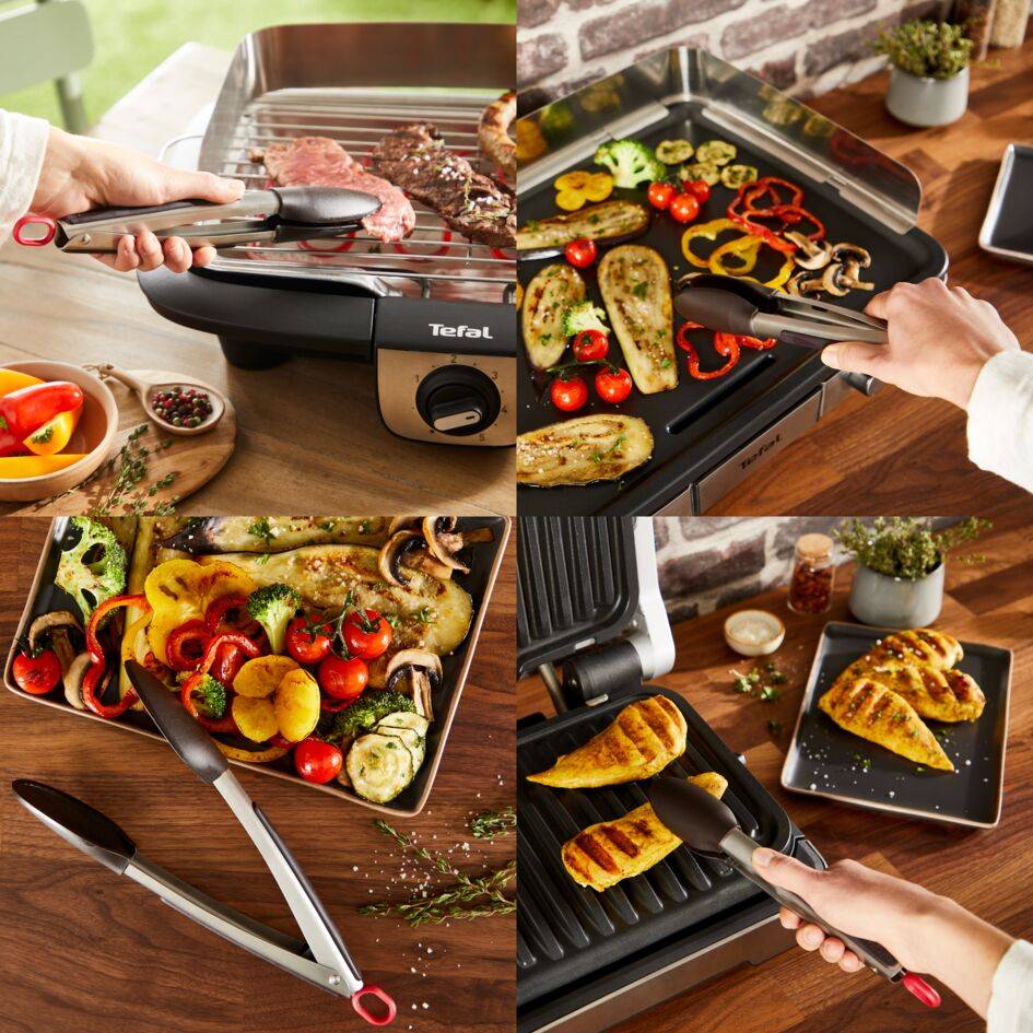 Či už grilujete hamburgery s priateľmi na dvore, chystáte úžasné grilovanie morských plodov v kuchyni alebo pripravujete vegetariánske grilovanie, Tefal vám ponúka pomocnú ruku v podobe praktických grilovacích pomôcok, aby ste mohli ľahko pripraviť aj tie najnáročnejšie recepty! Tieto kliešte na grilovanie sú ideálne na uchopenie, otáčanie a premiestňovanie rôznych druhov grilovaných surovín. Sú vybavené nylonovými koncami, ktoré nepoškriabu, sú šetrné k nepriľnavým povrchom a ľahko sa čistia a skladujú.