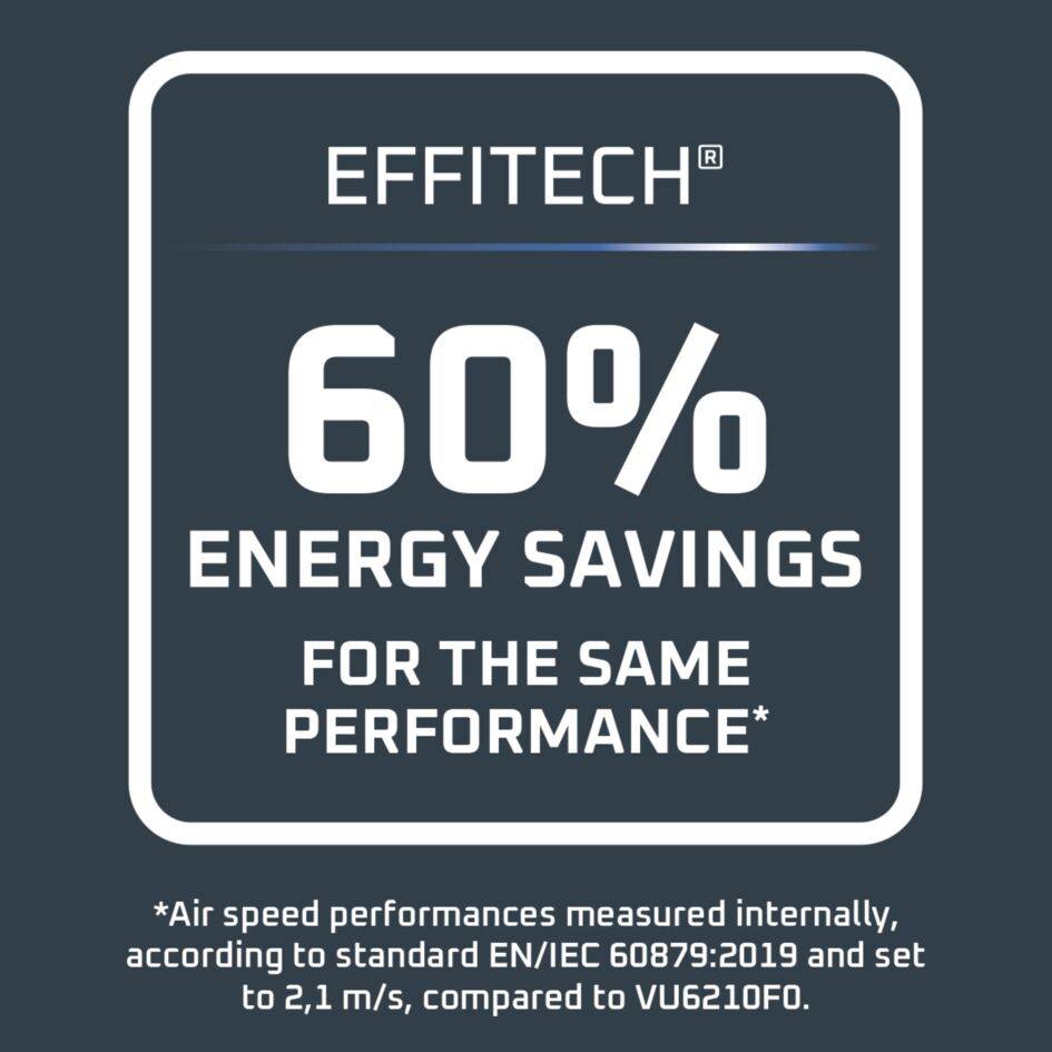 Vychutnajte si intenzívne osvieženie v extrémnom tichu počas celého leta – a pokojné noci plné odpočinku – vďaka nášmu úplne novému motoru Effitech. Táto nová technológia poskytuje tichý a zároveň vysoký výkon, ktorý môžete očakávať od značky Rowenta, pričom spotrebuje o 60 % menej energie.**