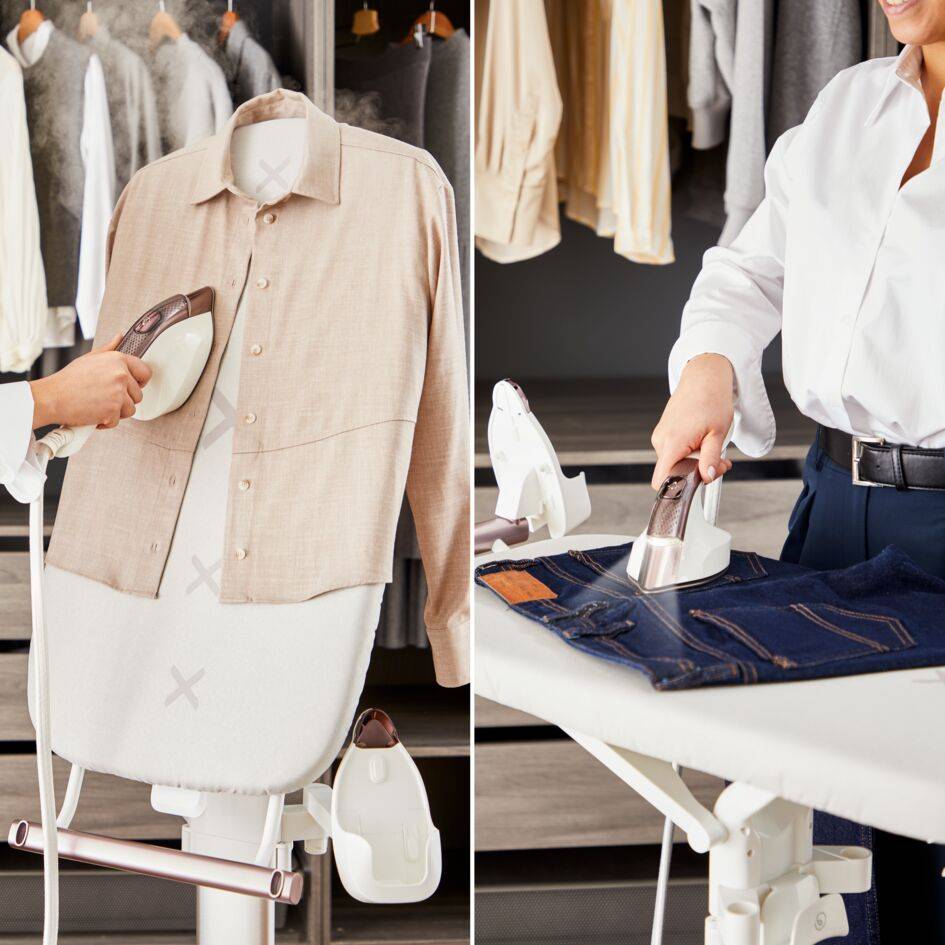 Od vertikálneho naparovania po horizontálne žehlenie – naša nová polohovateľná doska je navrhnutá tak, aby vyhovela všetkým vašim potrebám v oblasti starostlivosti o odevy a aby ste mali dokonale upravené oblečenie na každú príležitosť. Používanie žehliacej dosky nebolo nikdy jednoduchšie – vďaka novému systému ovládaniu jednou rukou je jeho použitie rýchle, jednoduché a intuitívne. Aby ste vyzerali dokonale každý deň a bez námahy!