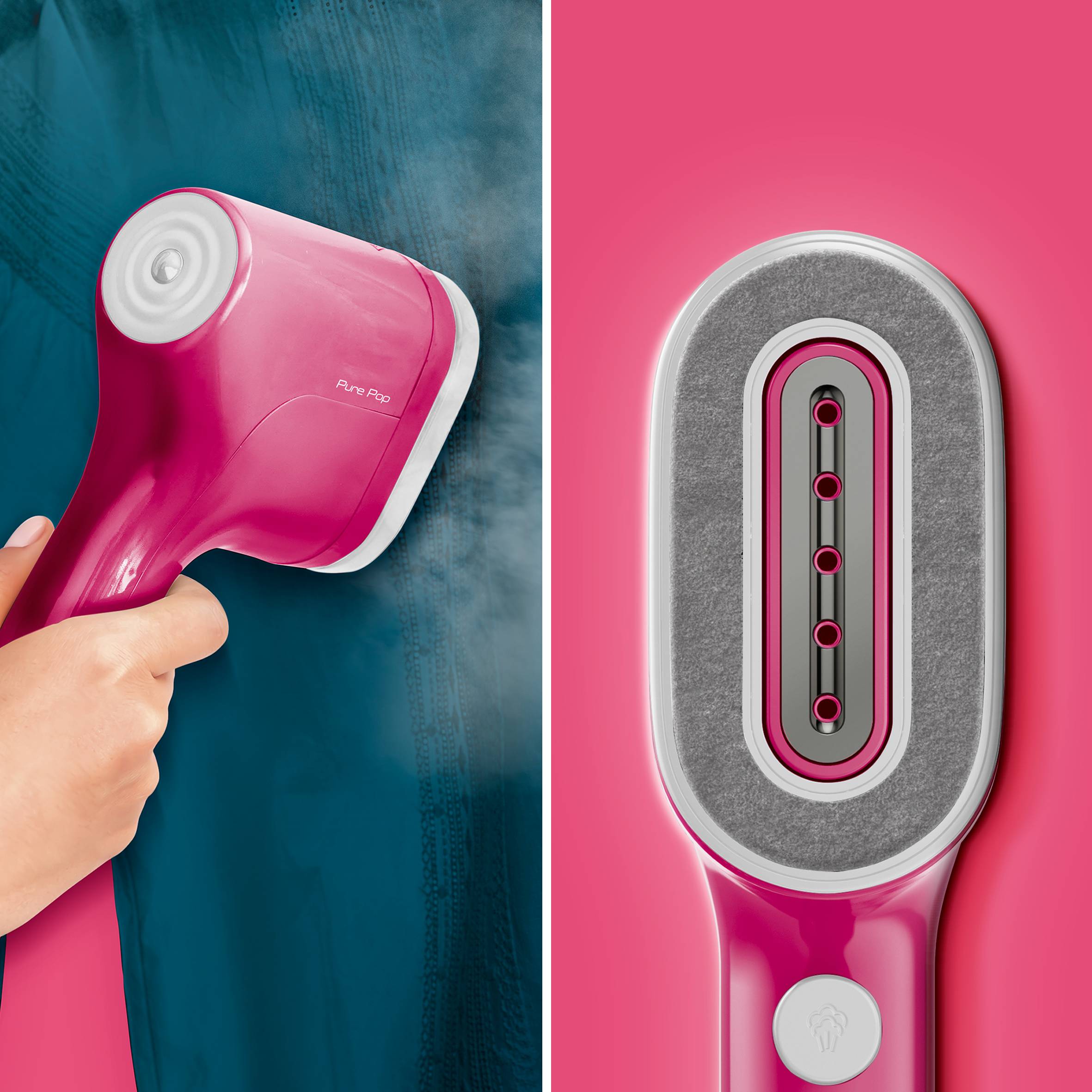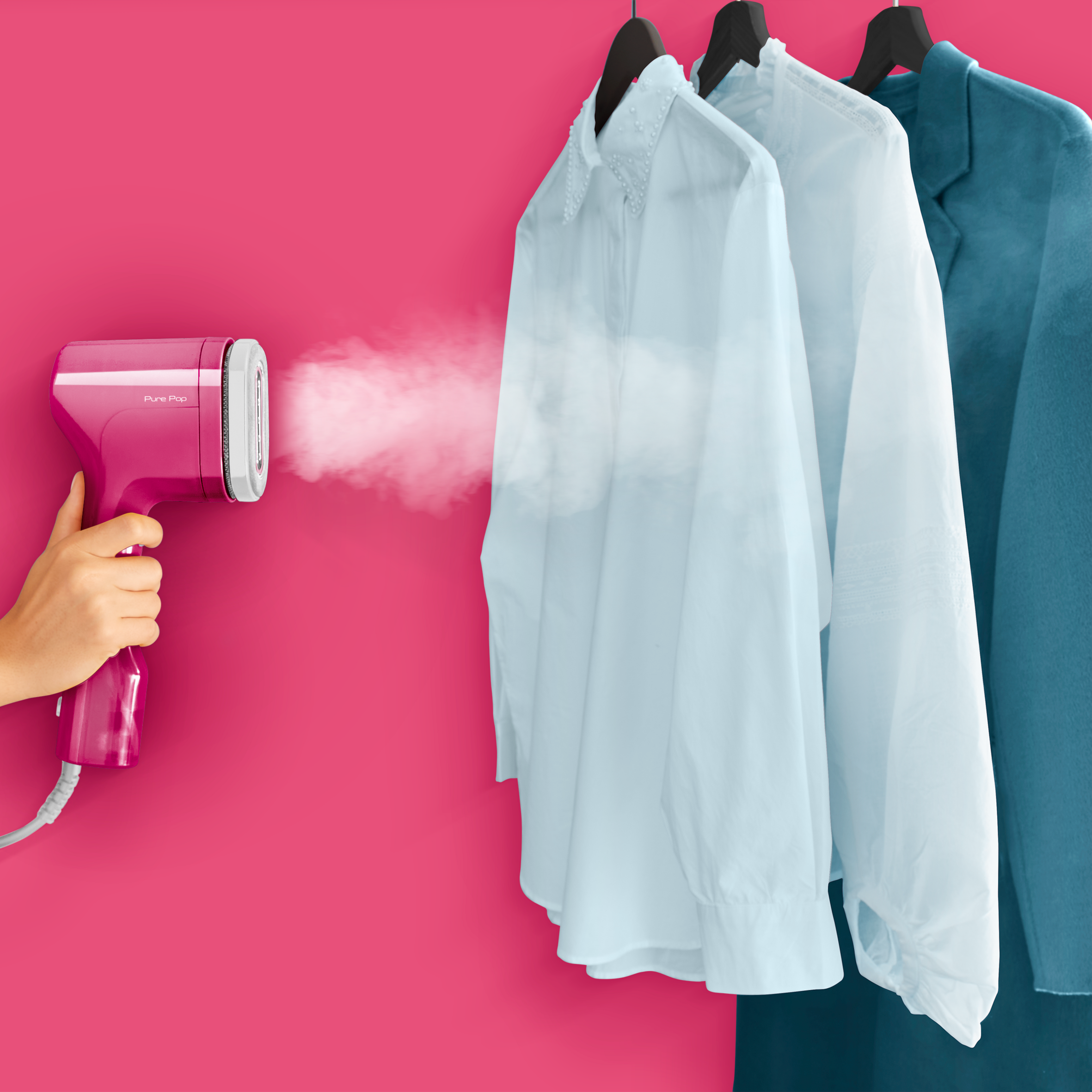 Pridajte sa k novému trendu: Predstavujeme vám Tefal Pure POP, váš osobný naparovač odevov, ktorý naparuje akékoľvek oblečenie doma aj na cestách. Tento ručný naparovač je vysoko intuitívny a ponúka kompletnú starostlivosť jedným plynulým a prirodzeným pohybom. Exkluzívny systém obojstranných dosiek so stranou na odstraňovanie nečistôt a stranou na naparovanie umožňuje jednoduché striedanie a vďaka obzvlášť kompaktnému a úzkemu dizajnu si naparovač môžete vziať kamkoľvek so sebou! Ručný naparovač Tefal Pure POP posúva starostlivosť o odevy na úplne novú úroveň... a to všetko v pestrom štýle.