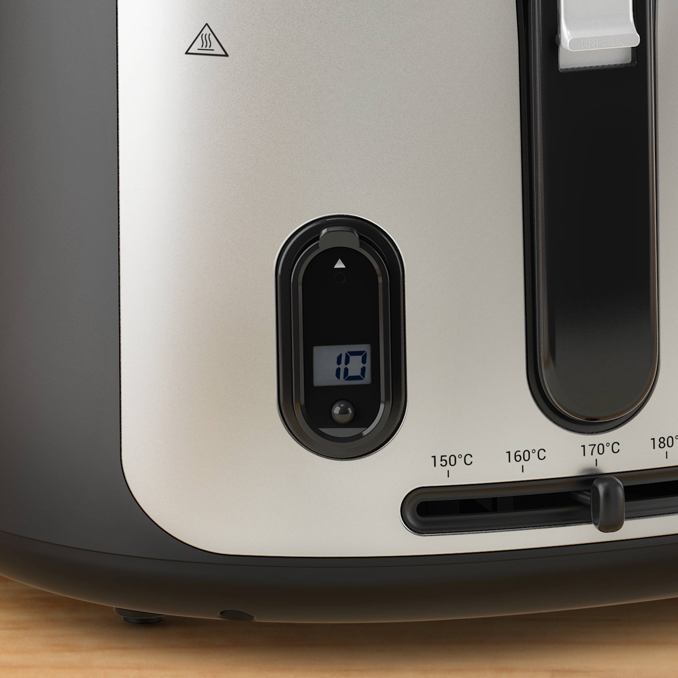 Olejová fritéza s exkluzívnym vekom využívajúcim technológiu Grandview v záujme lepšieho prehľadu a dokonalých výsledkov Filtračné sito pre čistejší olej s dlhšou trvanlivosťou a lepšou chuťou jedla Odpojiteľný, prenosný časovač si môžete vziať vo vrecku kamkoľvek v dome –tomu sa hovorí jednoduchý dohľad nad varením