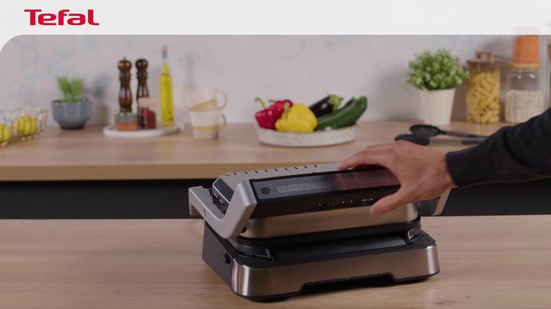 Dokonalé výsledky grilovania od prepečeného po dobre prepečený: automatický senzor a automatické nastavenie času grilovania na základe množstva a hrúbky suroviny. Nie je potrebná teplotná sonda. Nie je potrebné kontrolovať jedlo: Farebný indikátor vás informuje, kedy je jedlo hotové – prístroj je vybavený 9 automatickými programami 4 prístroje v 1, vrátane inteligentného elektrického grilu, barbecue, rúry a pomocníka pre prípravu kompletného menu a každodenné použitie Ľahké čistenie: nepriľnavé grilovacie dosky, odkvapkávacia miska a plech na pečenie sa dajú umývať v umývačke riadu Nekonečná inšpirácia: objavte mobilnú aplikáciu My Tefal so stovkami personalizovaných receptov a návodov krok za krokom, aby sa každý recept podaril na výbornú. Zdravšie grilovanie: Až o 44 % menej tuku vďaka nakloneným grilovacím doskám, ktoré pomáhajú odvádzať tuk 15 rokov opraviteľnosti za primeranú cenu, ktorá pomáha životnému prostrediu a znižuje množstvo odpadu