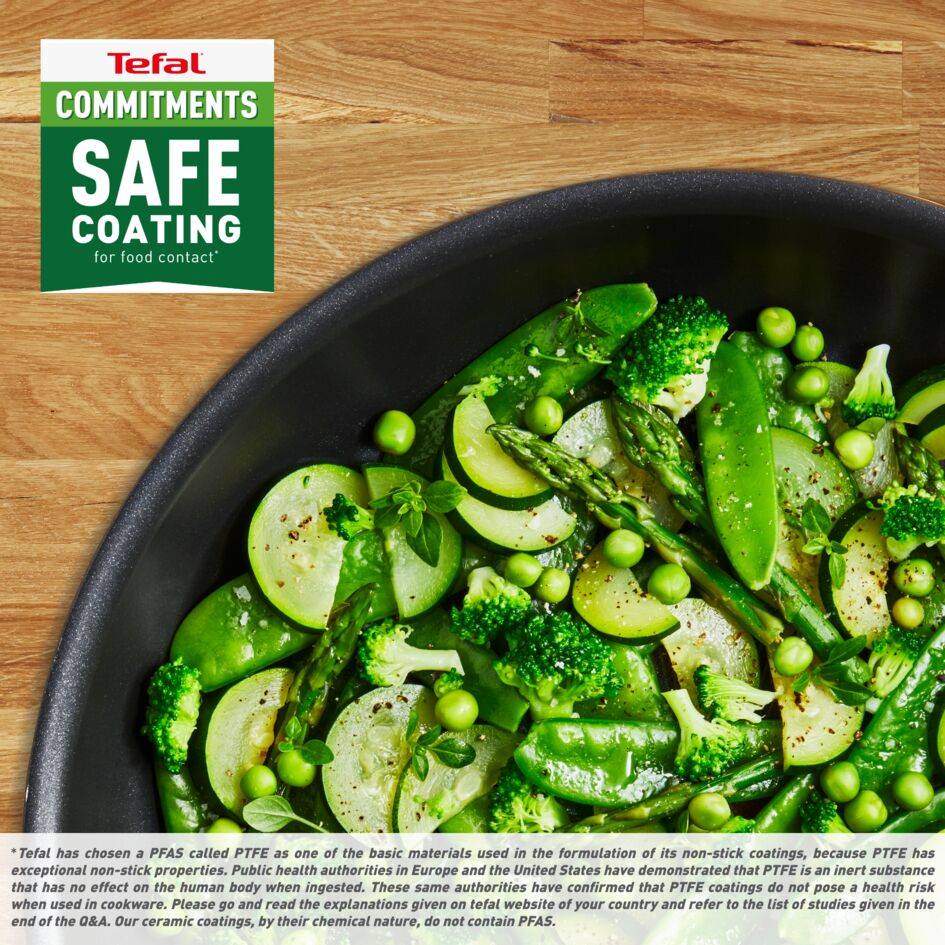 ELEGANCIA A JEDNODUCHOSŤ: Dôsledne upravený vzhľad pre odolné, lesklé a pekné kuchynské náčinie. ODOLNÝ NEPRIĽNAVÝ POVRCH: Odolný nepriľnavý povrch zaisťuje ľahké varenie a každodenné čistenie. ZÁVÄZKY TEFAL V OBLASTI KVALITY A ODBORNOSTI: Tefal, priekopník v oblasti nepriľnavých panvíc, vyrába svoje produkty s vysokou úrovňou kvality a odbornosti INDIKÁTOR TEPLOTY: Inovatívna zóna Thermo-Signal™, ktorá zmení farbu, keď je panvica pripravená na varenie, čím zabezpečí dokonalé vyprážanie RÝCHLE A ROVNOMERNÉ VARENIE: Dno Thermo-Fusion™ pre rýchle a rovnomerné varenie a dlhodobý výkon. Kompatibilný so všetkými varnými doskami vrátane indukčných, navyše je vhodný aj do rúry do 250 °C. IDEÁLNY FORMÁT: Pre ľahkú prípravu receptov, ktoré zaručene potešia, od omeliet po burgery či grilované kuracie mäso. ROBUSTNÁ RUKOVÄŤ: Mimoriadne odolná rukoväť bez medzier zaisťuje vyššiu bezpečnosť a ľahšiu manipuláciu pri varení ZÁRUKA 5 ROKOV NA NEHRDZAVEJÚCU OCEĽ: Objavte produkt prvotriednej kvality s odolnou konštrukciou, ktorá vydrží a zaisťuje dlhodobú funkčnosť a spoľahlivosť
