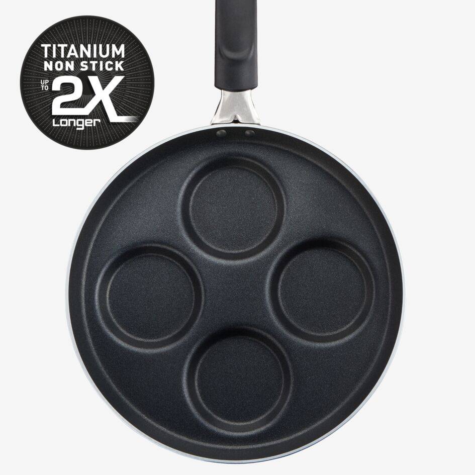 Panvica na lievance bola navrhnutá pre jednoduchú prípravu raňajok, či už používate zmes kúpenú v obchode, alebo si cesto pripravujete sami. Tajomstvo spočíva v dizajne s priehlbinami, vďaka ktorému sa zakaždým vytvoria dokonale tvarované, dozlatista opečené lievance. Pripravte nadýchané, dozlata upečené lievance vďaka vysokovýkonnému nepriľnavému povrchu, ktorý uľahčuje prípravu (aj čistenie). Stačí naplniť každú priehlbinu cestom a Pancake Time sa postará o zvyšok. Raňajky ešte nikdy neboli také chutné!