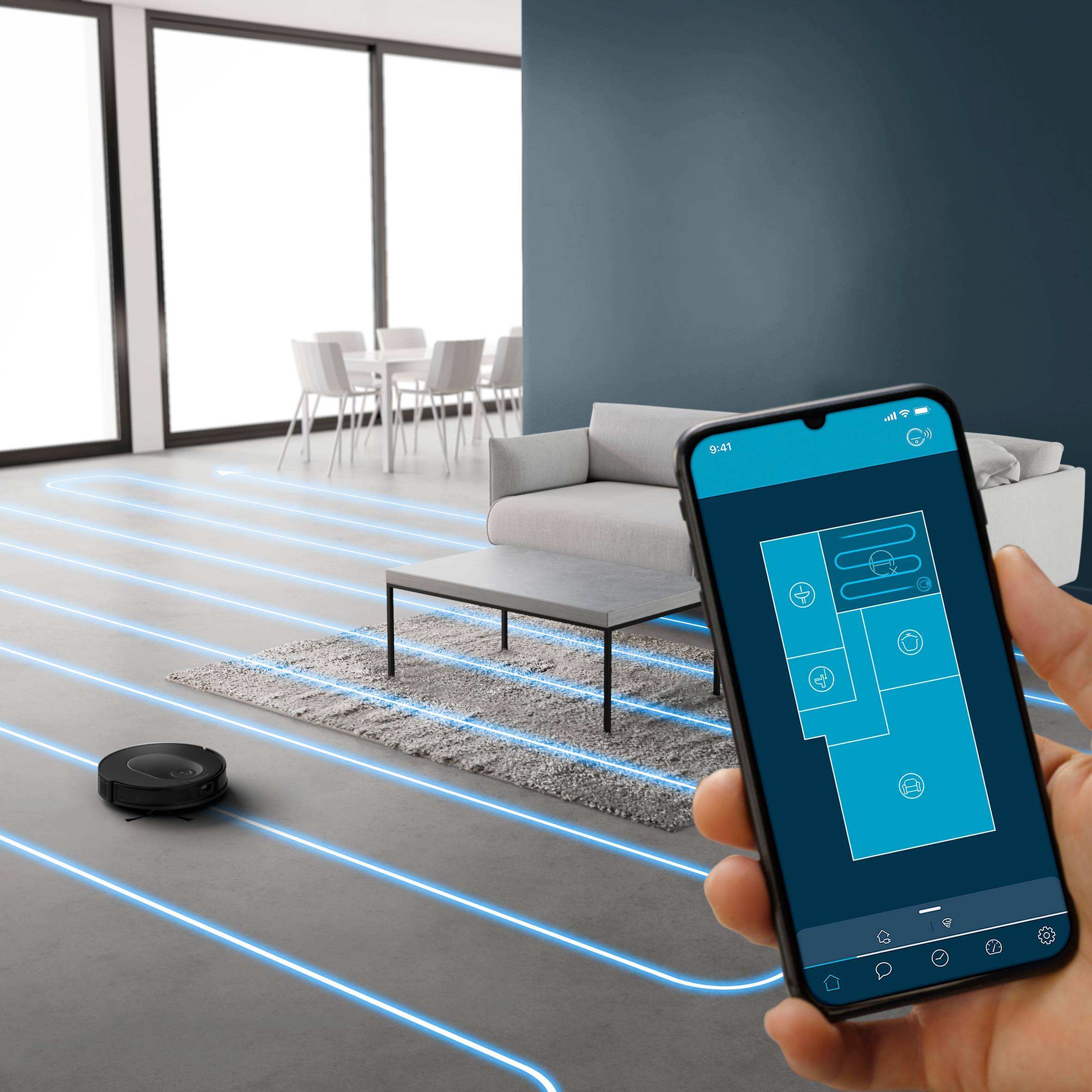 Robotický vysávač s laserovou navigáciou pre systematické upratovanie veľkých priestorov a trvalé mapovanie Systém automatického vysypávania do 4,5-litrového vrecka s vysokou mierou filtrácie prachu zaručuje, že až 60 dní nemusíte vysypávať nádobu v robote, urobí to za vás sám. Praktické a hygienické riešenie pre skutočne automatické čistenie. Ultratenká konštrukcia s výškou iba 7,8 cm pre dokonalé upratovanie aj pod nábytkom a na ťažko prístupných miestach Systém Smart Aqua Power: Elektronická regulácia tlaku vody počas utierania pre všetky typy tvrdých podláh Upratovanie s dvojitým účinkom vďaka systému Smart Aqua Power pre utieranie a vysávanie zároveň Prenechajte upratovanie robotickému vysávaču vďaka automatickým programom a ovládaniu pomocou smartfónu Robotický vysávač sa pred pokračovaním v upratovaní automaticky vráti do dokovacej stanice a dobije sa. Poupratuje tak neobmedzene veľkú plochu. Automatický vysávač je schopný prejsť prahy, koberce a behúne s výškou až 18 mm