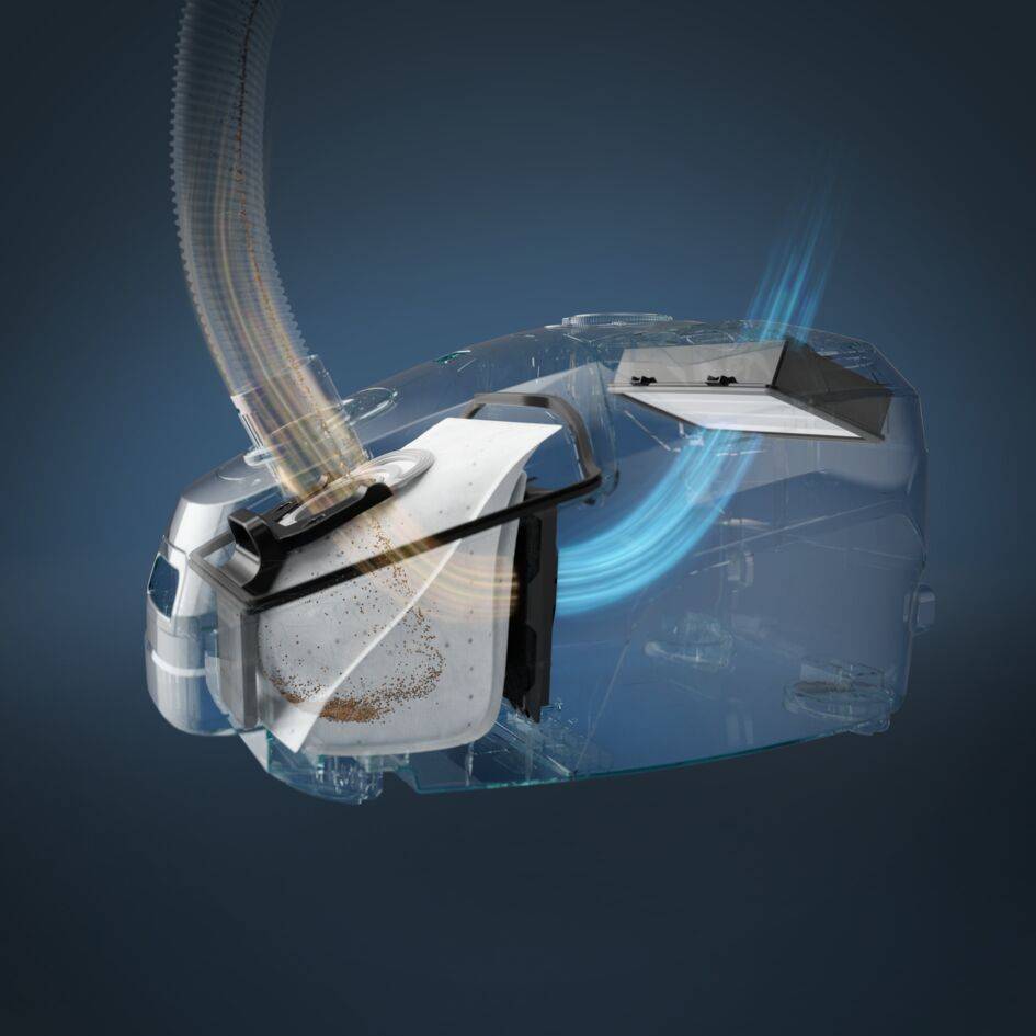 Výkonný vysávač s motorom s nízkym spotrebou* max. 900 W pre vynikajúci sací výkon na všetkých podlahách a povrchoch Vyrobené zo 70% recyklovaných plastov,** až na 82 % recyklovateľný,*** a má ekologický obal Filtrácia triedy HEPA (min. 99,98 %) pre kvalitu čistého vzduchu, ideálny pre rodiny s alergikmi Extra veľký polomer upratovania 12 metrov pre pokrytie veľkých plôch bez odpojenia od zásuvky Možnosť opravy počas 15 rokov za primeranú cenu, čo podporuje náš záväzok poskytovať odolné a udržateľné výrobky Systém vysypávania so sáčkom Hygiene+ zaručuje nulový kontakt s prachom pre maximálnu hygienu a bezkonkurenčnú praktickosť Kompaktný a ergonomický dizajn pre praktické používanie a jednoduché odkladanie