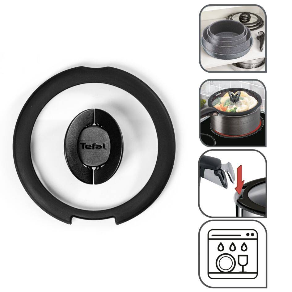 Sklené pokrievky na ľahšie varenie od varnej dosky cez chladničku až po umývačku riadu Tefal Ingenio Jednoduché a pohodlné možnosti skladovania s priestorovo úspornými sklenými pokrievkami s dômyselnými sklopnými držadlami Skráťte si čas varenia a sledujte jeho priebeh s úplnou ľahkosťou Plne kompatibilné s riadom Ingenio, ponúkajú dokonalé prispôsobenie odnímateľnej rukoväte pre riad Ingenio Vyrobené z materiálov vhodných do umývačky riadu, so sklopnou hornou rukoväťou a kompaktným dizajnom, ktorý je ideálny pre stojany na riad v umývačke Tefal, svetová jednotka v oblasti kuchynského riadu,* zaručuje vždy dokonalé výsledky (*Zdroj: Euromonitor International Limited, Home and Garden 2022, maloobchodná predajná cena RSP, údaje z roku 2021)