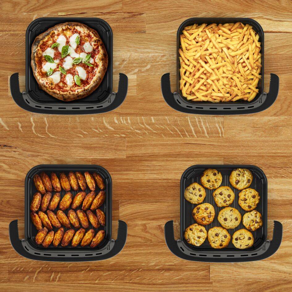 XL plocha: Štvorcový tvar, ktorý šetrí miesto na pracovnej doske a pojme až 1 kg hranolčekov, 27 cm pizze alebo 25 kuracích krídeliek Univerzálna veľká teplovzdušná fritéza na všetky vaše obľúbené recepty: hranolky, kuracie mäso, ryby, pizza, sušienky a mnoho ďalších Technológia teplovzdušnej fritézy Extra-Crisp a dve vykurovacie telesá sa postarajú o chrumkavé a chutné výsledky v priebehu okamihu Pohodlné teplovzdušné vyprážanie s okienkom na kontrolu uvareného jedla bez nutnosti vyberania koša. Intuitívny digitálny ovládací panel na jednoduché nastavenie programu, teploty a času varenia Energeticky úsporné varenie, ktoré spotrebuje až o 70 % menej energie* a pripraví jedlo rýchlejšie ako bežné rúry. Aplikácia My Tefal vám prináša jedinečný používateľský zážitok – recepty na mieru a personalizované služby. Kvalita podporená našou 15-ročnou zárukou dostupnosti servisných opráv so zreteľom na ochranu životného prostredia a znižovanie množstva odpadu